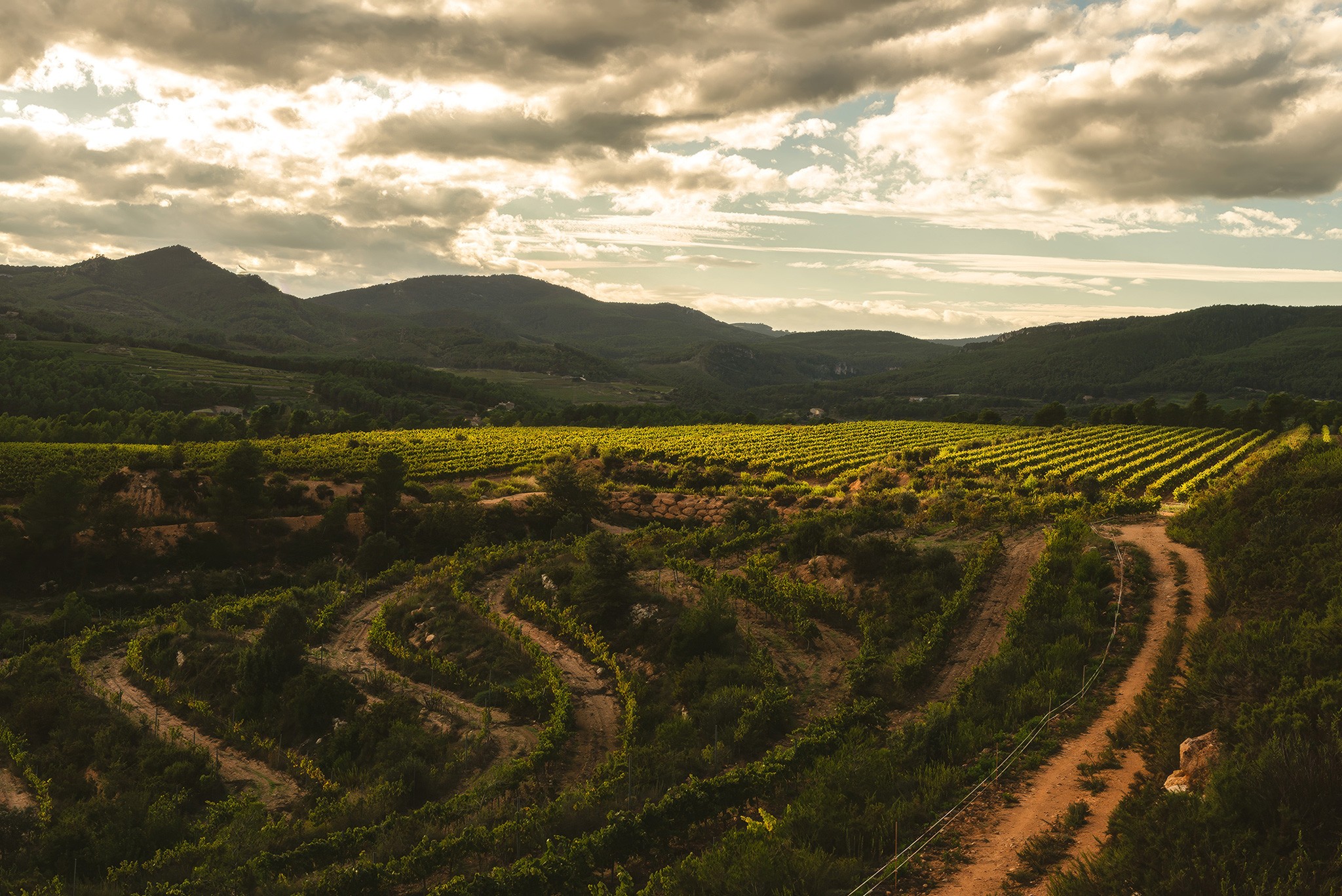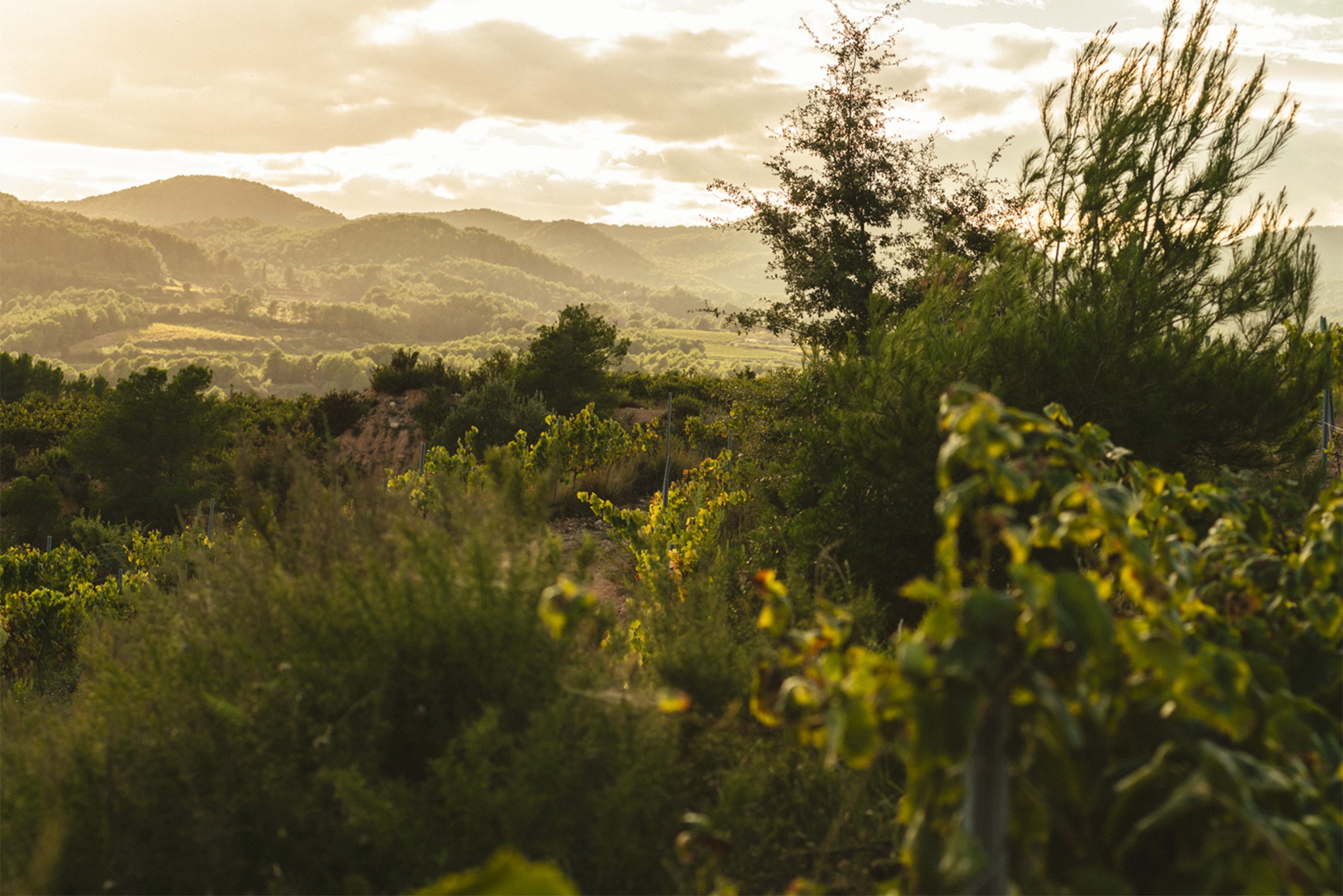 Our vineyards rise where effort shapes character. High above the Mediterranean, among forests, herbs, and stone, vines grow slowly, challenged by altitude, wind, and light. This struggle gives birth to purity, tension, and natural balance.